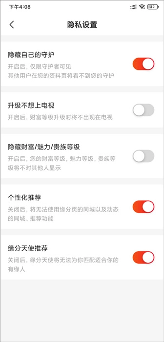 4、在隐私设置中找到“守护可见性”选项,开启或关闭圆形开关即可调整是否隐藏自己的守护状态。
