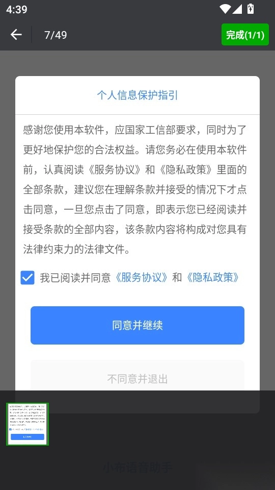 1.首先打开软件阅读“个人信息保护指引”后,点击“同意并继续”按钮进入