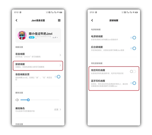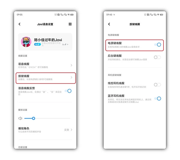 在按键唤醒设置界面开启电源键唤醒,长按电源键0.5秒唤醒Jovi语音助手。