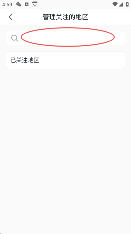 4、在搜索栏中输入需要关注的地区名称。