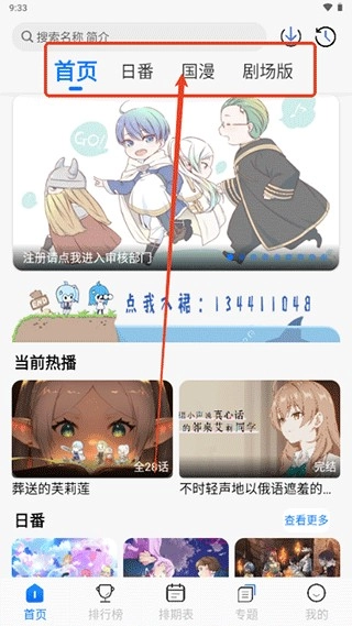 2、在首页可以选择查看日漫,国漫,或者是电影