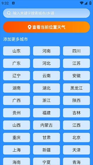 2、添加城市,选择你所在的城市,它甚至能精准到街道的天气