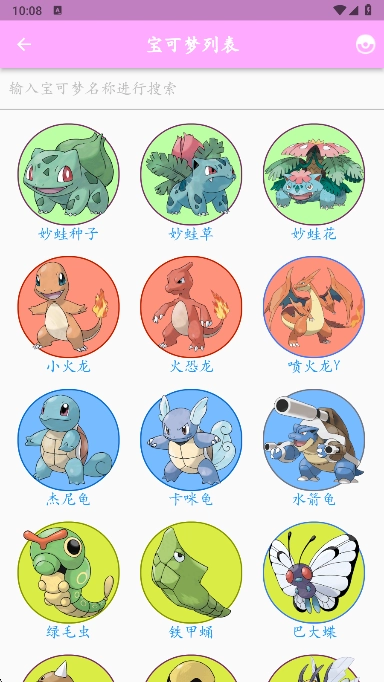2、点开宝可梦列表可以看到各类宝可梦