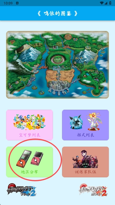 1、我们在首页能够浏览到基础功能,比如宝可梦列表、招式列表、地区分布、训练家队伍等内容。