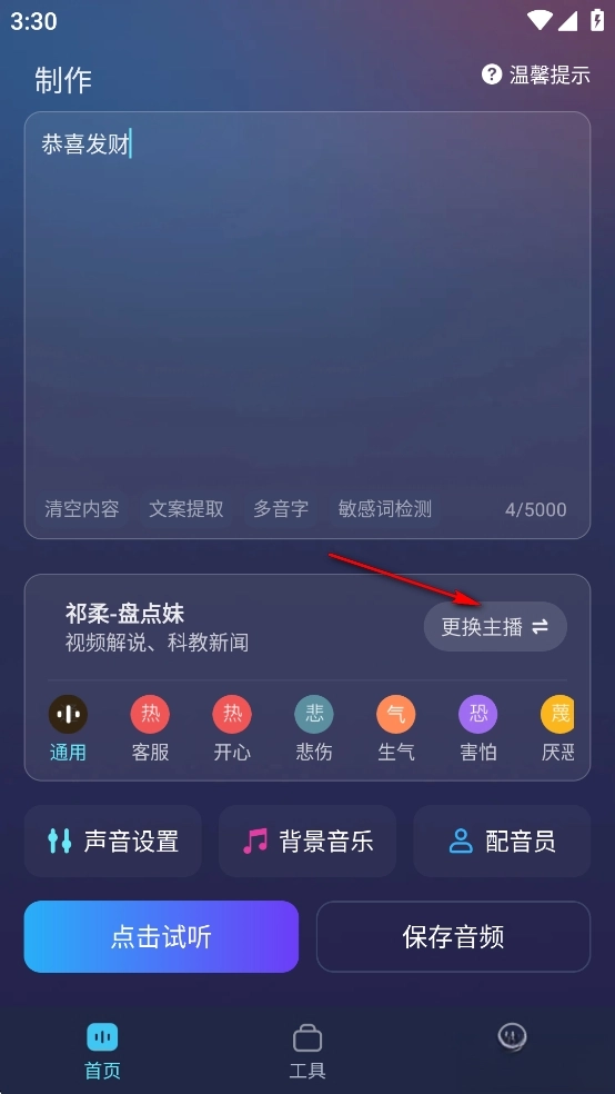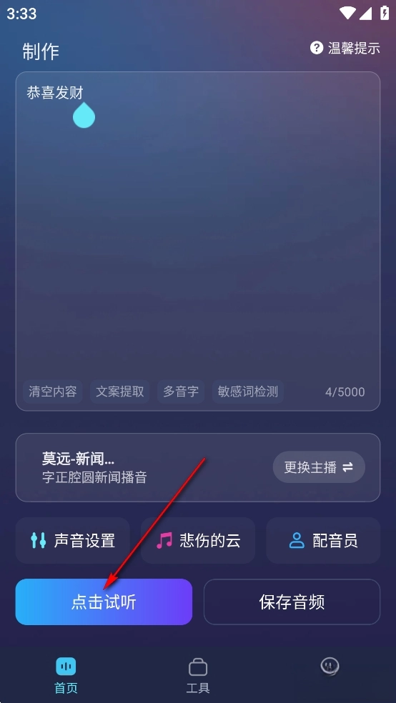 在输入框输入需要配音的文字