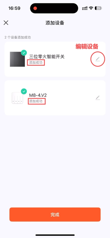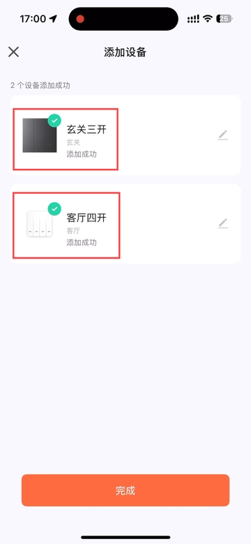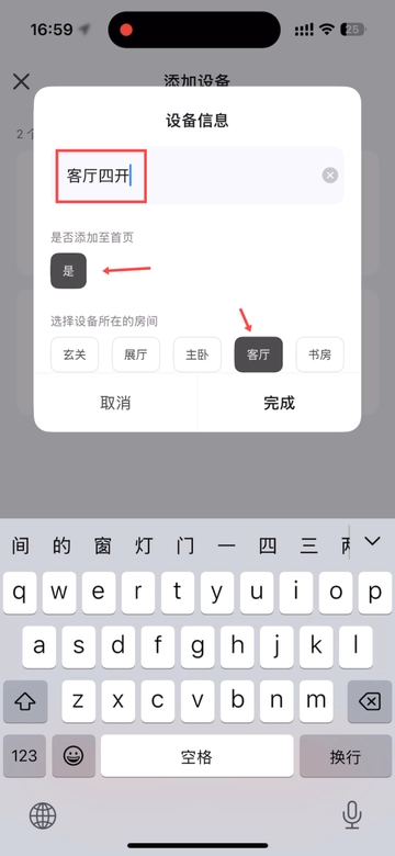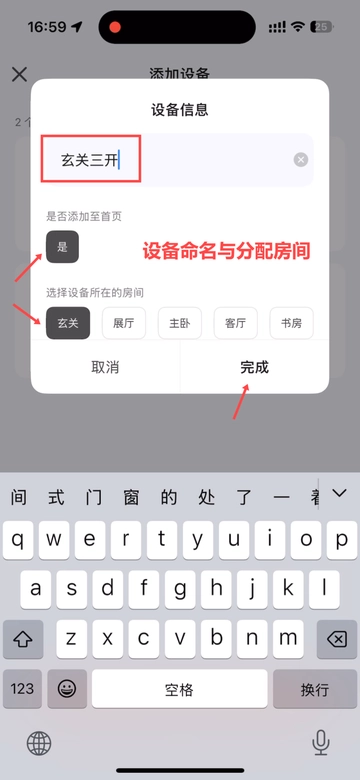 系统默认新设备添加至首页,你只需将设备分配到对应的房间,点击完成即可~