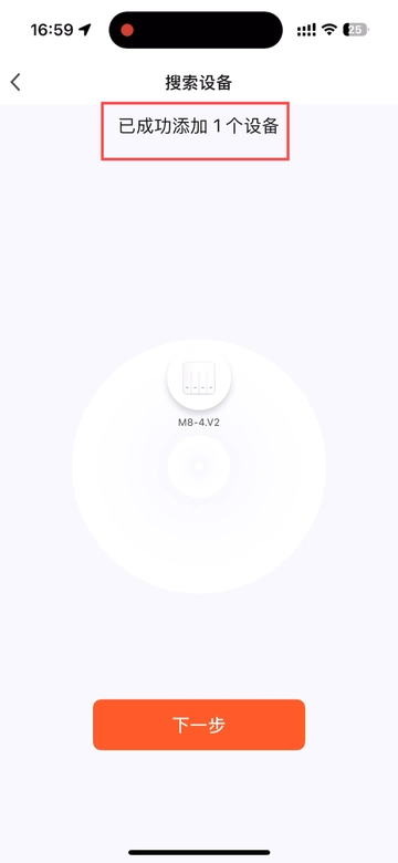 我们此时已成功添加一个开关入网,当所需设备全部入网后,点击‘下一步’。