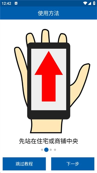 2、先站在住宅或商铺中央,将手机如图示放在手心上