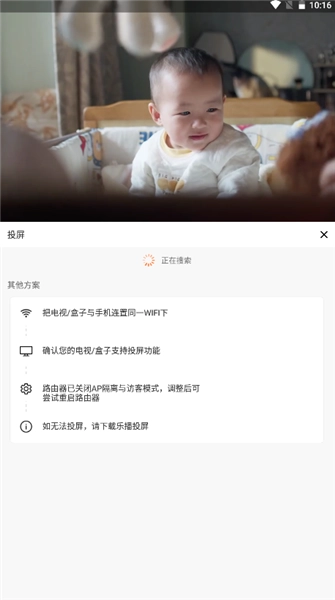 3、把电视和手机连接在同一个WiFi下,然后点击下方搜索到的投屏设备开始投屏即可。