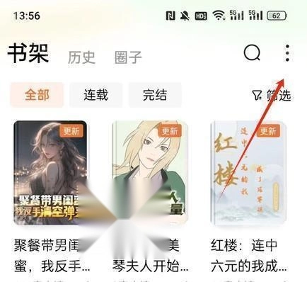 2、跳转页面后,点击右上方的三点图标,点击导入图书选项。