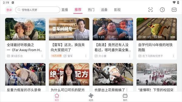 1、打开B站HD版本,进入首页后,系统会为你推荐最新的视频内容。