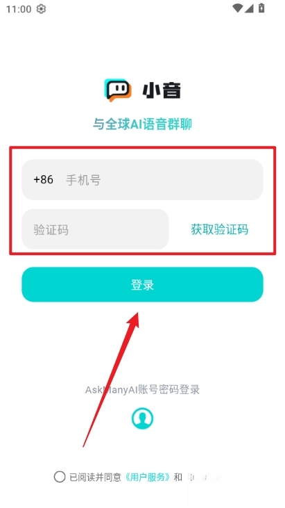 1、进入软件后,输入手机号并填写验证码就能完成登录。