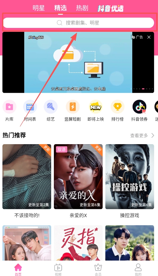 2、高效找片有两种路径,一是利用搜索框进行关键词精准查找,二是浏览“热门推荐”和“排行榜”来获取平台热门内容。