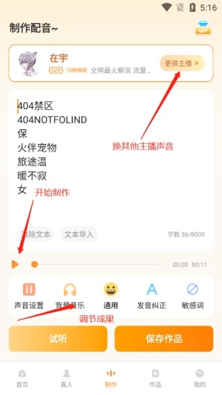 6、可具体操作进行更换语音声音,调节语速使配音更加自然