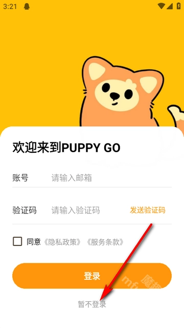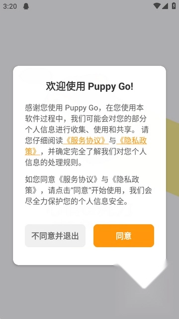 首次打开PUPPY GO软件时,需要同意用户协议才能继续使用。