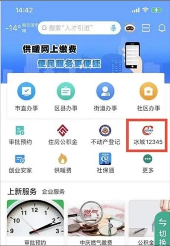 1、打开软件进入首页后,找到“冰城12345”选项;若首页未直接显示该选项,点击页面下方的“更多”按钮查找即可。