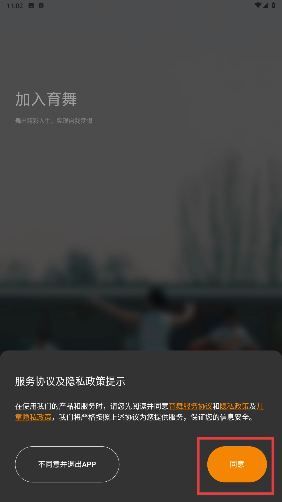 1、在服务协议与隐私政策的提示页面,点击【同意】功能按钮,接受相关条款后即可继续使用应用。