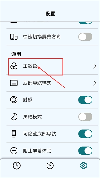 3、在【设置】页面中,找到【通用】分类下的【主题色】选项并点击,可进入主题色选择界面,自定义应用的视觉风格。