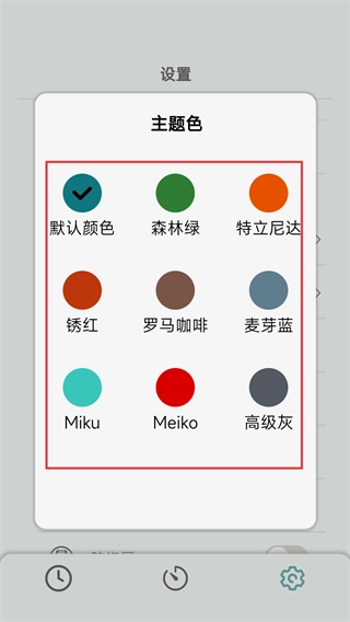 4、进入【主题色】选择界面后,可从【默认颜色】【森林绿】【特立尼达】等多种配色中选择,点击对应颜色即可切换应用主题。