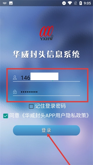 2、进入【华威封头信息系统】登录界面,先输入账号及对应密码,可勾选【记住登录密码】,确认信息后点击【登录】按钮完成登录操作。