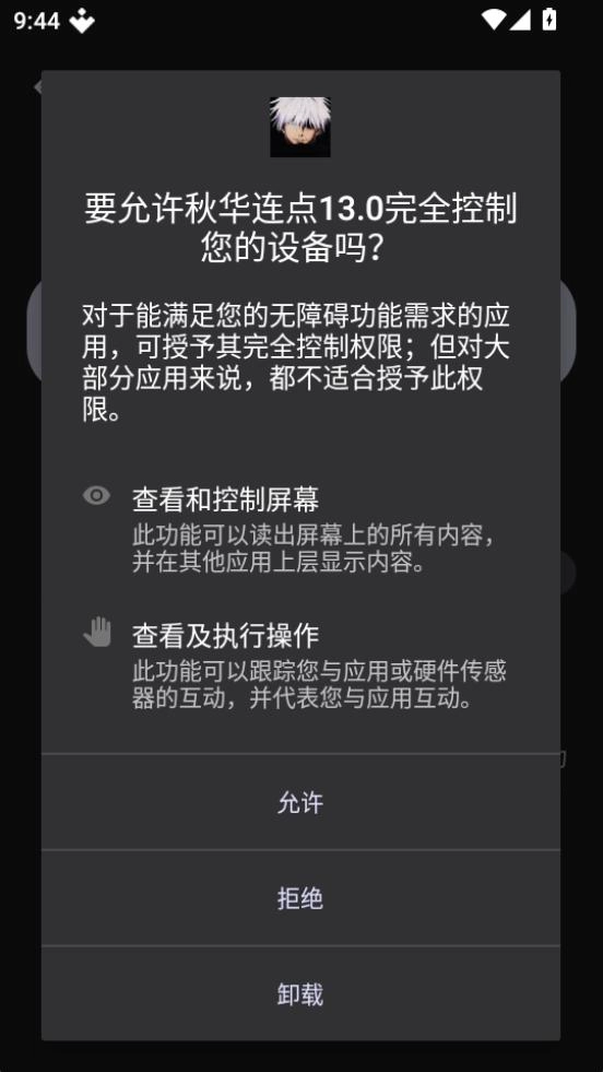 完成安装后,系统会自动弹出“无障碍服务”的提示。