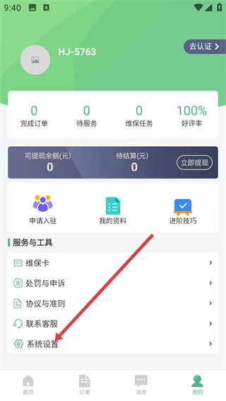 2、在【我的】页面,找到【服务与工具】板块下的【系统设置】选项,点击该选项进入对应的设置界面。