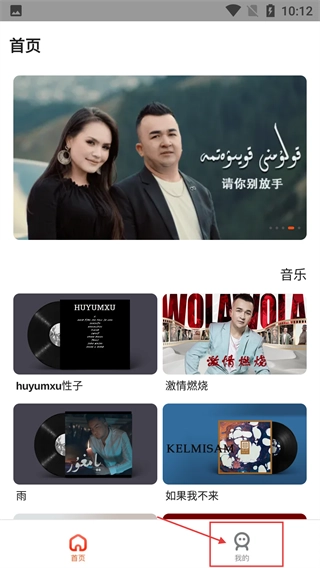 1、在【首页】界面,能浏览推荐内容以及【音乐】板块的作品,点击底部的【我的】按钮,就能进入个人中心页面。