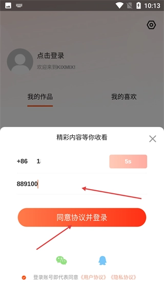 4、完成手机号与验证码的填写,勾选【用户协议】【隐私协议】后,点击【同意协议并登录】按钮,即可完成账号登录。