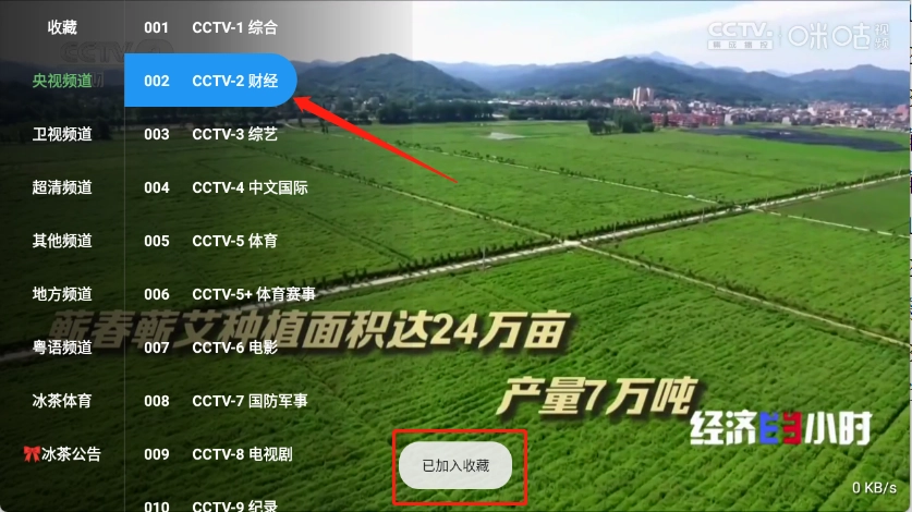 4、点击左上角的收藏栏目就可以看到收藏的电视频道了。