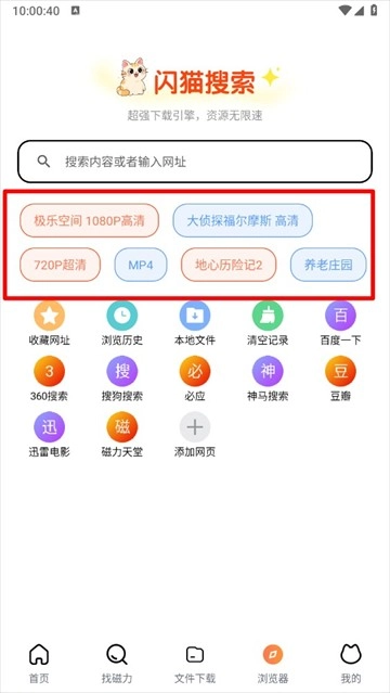 1、它配备了浏览器搜索功能,可以让你直接打开网页搜索资源。经过深入测评,速度极快,最高可达7M ~ 8M / s。