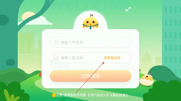 1、启动软件后,在登录界面输入手机号并获取验证码,以此完成登录或注册操作,请注意勾选同意用户协议与隐私协议。