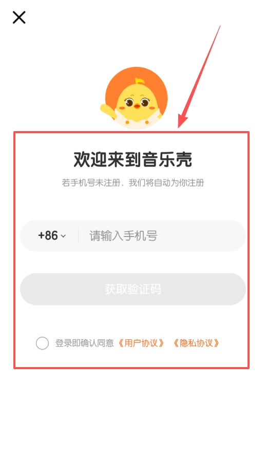 1、打开音乐壳教室,点击【请输入手机号】这一栏。