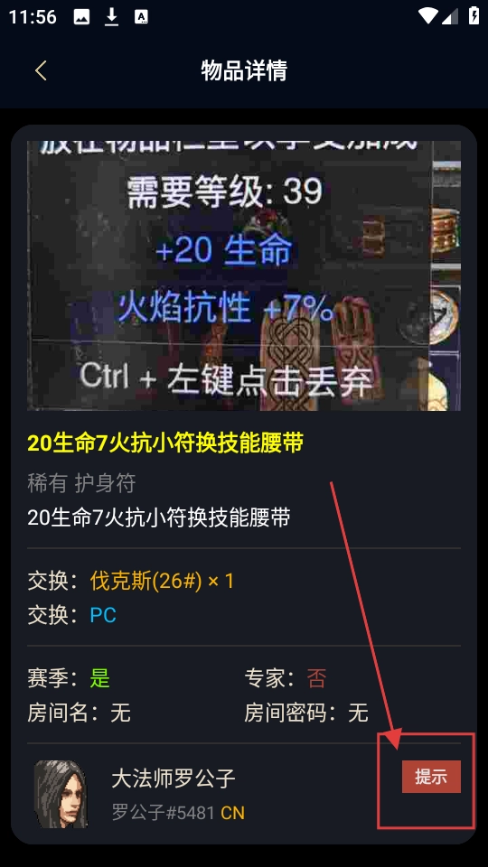 3、点击物品进入详情页后,点击【提示】,可查看物品交易的相关提示信息啦。