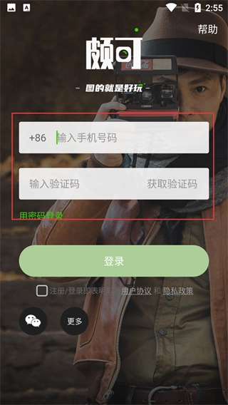 3、在登录页面选择手机号登录,先填写【输入手机号码】,点击【获取验证码】后填入,勾选协议即可登录。