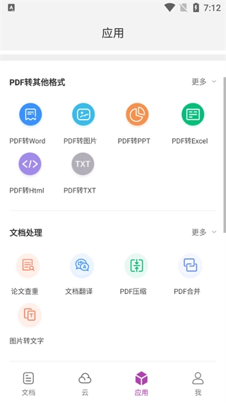 4、除此之外,福昕PDF编辑器App还具备PDF与Word/Excel/PPT等格式相互转换的功能,同时还拓展了论文查重、翻译等专业文档处理方面的功能。