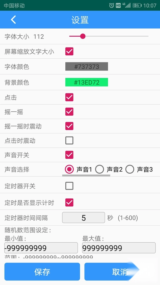 2. 可以屏幕多点触控缩放调节随机数字体大小
