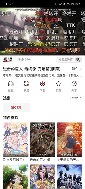 2、点击搜索栏我们可以直接搜索相应的动漫,如进击的巨人;