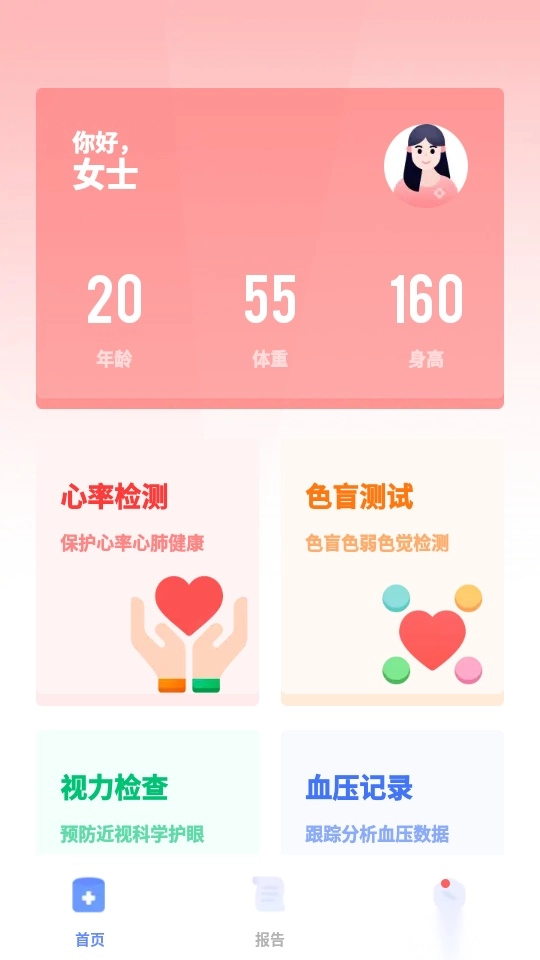 口袋体检测心率血压视力是一款专注于为用户提供心率、血压测试与记录服务的应用软件。它能够帮助用户科学监测自身的心率波动,让心率测量变得简单易行,同时以专业精准的检测结果为基础,方便用户对数据进行快捷记录,实现对自身健康变化的实时追踪与有效统计,助力用户轻松掌握健康状况。此外,该平台还支持用户进行专业的视力水平检测,通过定期测试视力健康状况,能更好地预防近视问题,让用户轻松了解自身视力情况;不仅如此,这款软件还具备色盲色弱自测功能,用户可以便捷地完成相关测试,并且能获取专业的知识解答。有需要的用户,不妨赶紧到本站来使用吧!