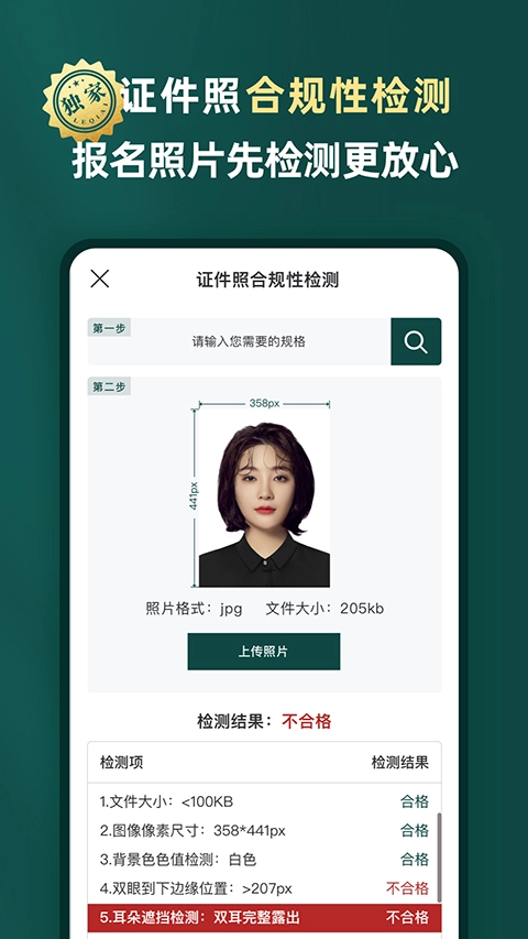 5.系统会自动检测是否达标,如是否清晰、是否合规、表情是否自然等。通过检测后即可预览成片,不满意也能重新调整。