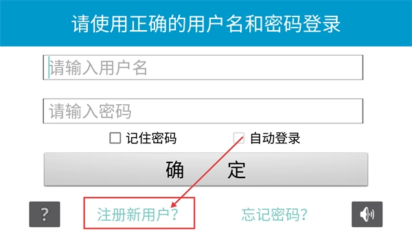 2、在登录页面先填写【请输入用户名】和【请输入密码】,若未注册可点击【注册新用户?】按钮进入注册流程。