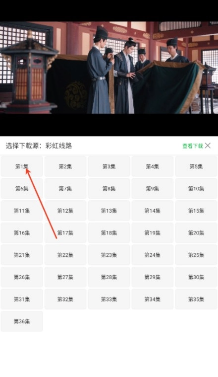 2、接着任意选择一部喜欢的剧集播放,找到【缓存】按钮。