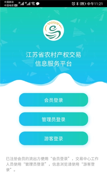 江苏省农村产权交易信息服务平台是一款面向本省居民打造的农业实用交易平台,居民可通过该平台开展土地、林权、房屋、农村产权等领域的线上交易,涵盖土地出租、买卖等多种业务类型。平台目前已开发产权交易管理、抵押融资登记、统计查询分析、预警监管、智能化设备接入等子系统。感兴趣的用户,欢迎前来体验!