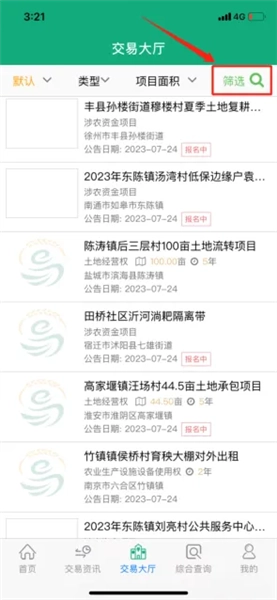 实名认证通过后,点击下方【交易大厅】,可在内搜索相关项目,了解项目基本情况。
