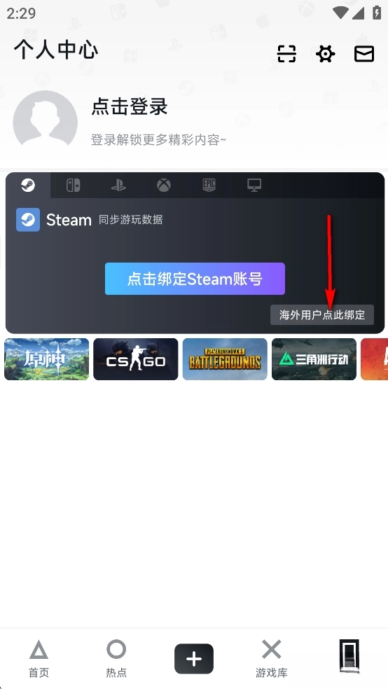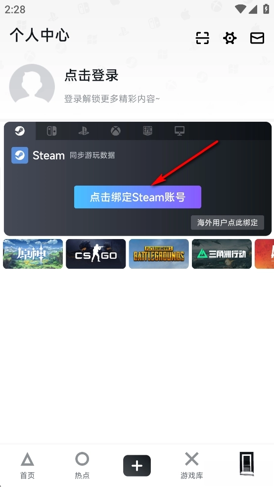 点击【点击绑定Steam账号】然后填写自己的信息去绑定即可