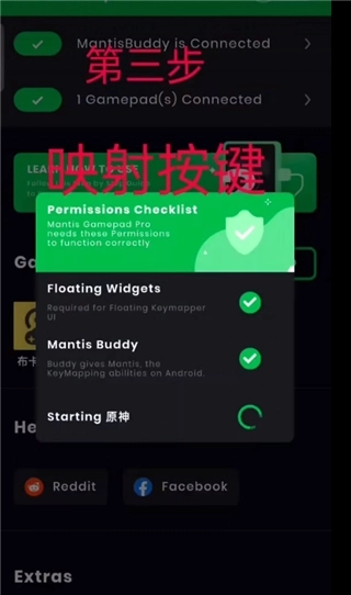 12、测试连接正常后,点击隐射按钮,开始原神游戏;