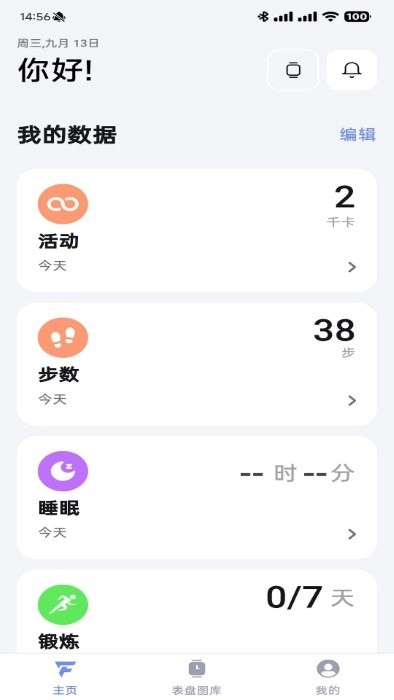 fitbeing软件是一款智能运动手表显示工具,借助它你能在这里掌握准确的锻炼数据,清晰查看自己的步数、锻炼时长以及睡眠质量;连接设备后,还可以更换表盘图片,十分实用,快来看看吧!
