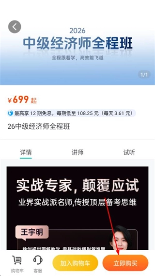 3、在课程详情页面,点击“立即购买”按钮时,如果用户尚未登录,系统会触发登录页面的跳转。
