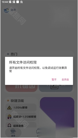 如果您是第一次修改画质,请最好先还原画质,并且重启游戏。使用画质之前,需要给本软件授权存储权限,之后才能正常使用画质功能。